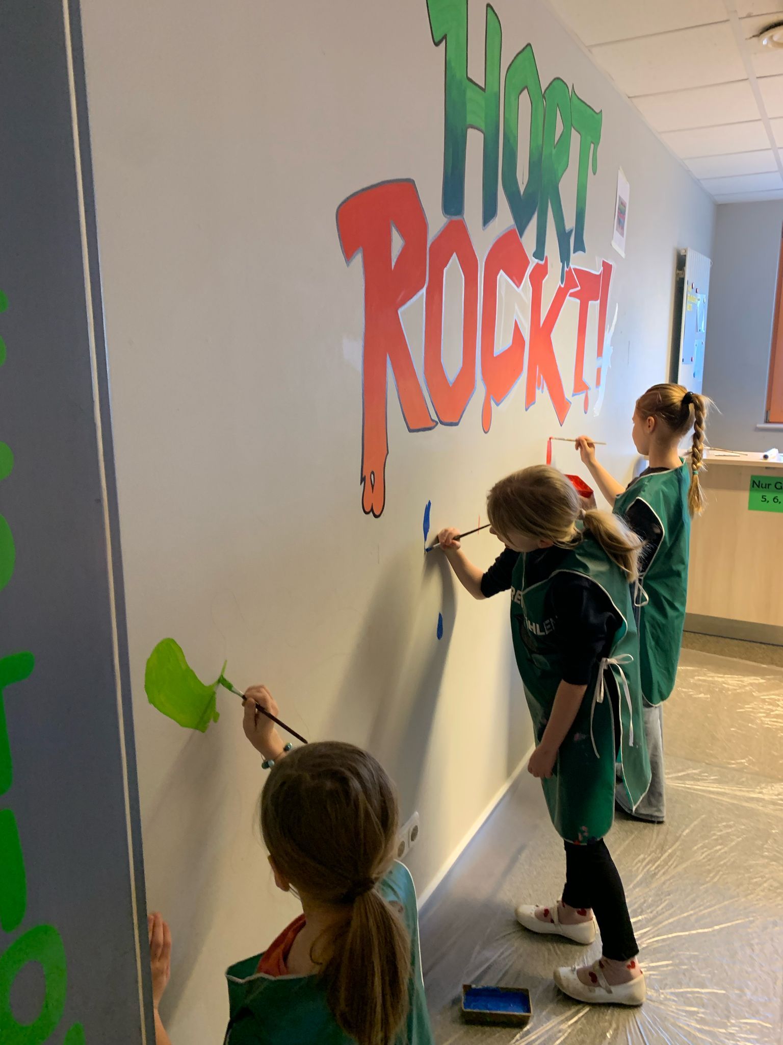 Ferienzeit ist auch kreative Zeit! Auf Wunsch der Kinder hat ein Raum nun in den Winterferien ein neues Gesicht bekommen. Gemeinsam wurde geplant, skizziert und gemalt. Das Ergebnis kann sich sehen lassen!